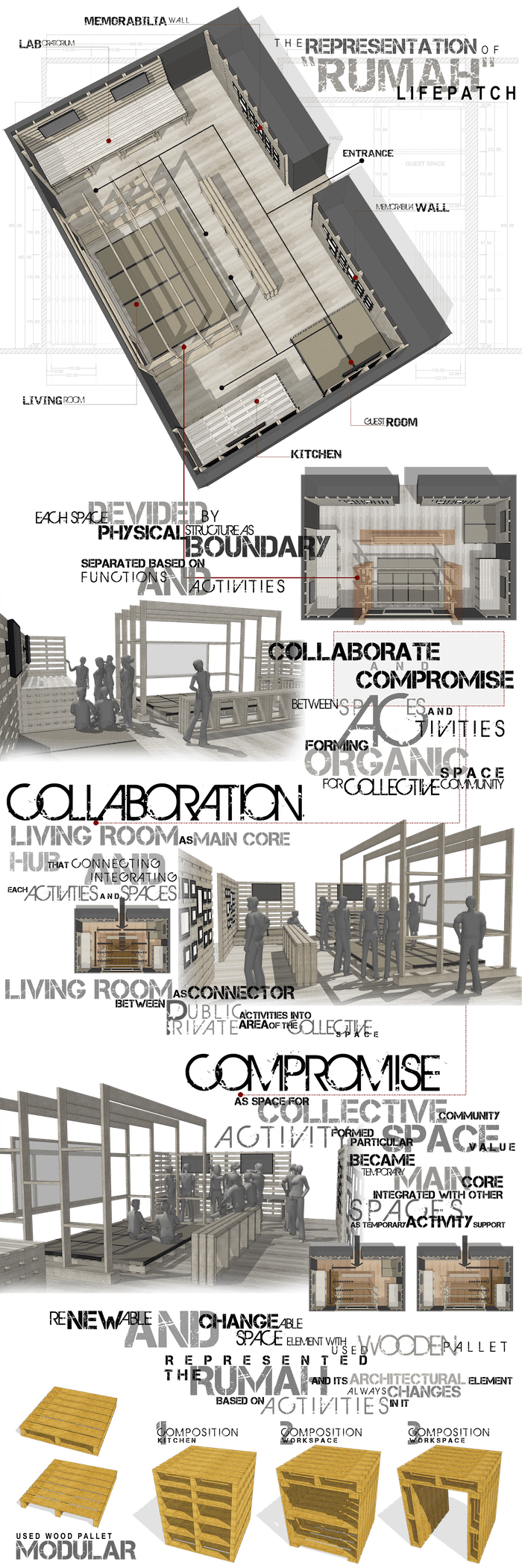 However, talking about The Rumah of Lifepatch as a space for collective community-based, there seems to be a tendency that the Rumah is not just a mere physical structure with a particular function, but as an organic space that lives and slightly changes when projecting the dweller’s lives and activities. Meanwhile, as a form of dialogue, it provides a creative environment within its spaces for its dwellers to conduct creative activities through the works and interaction between the collective members and other community.